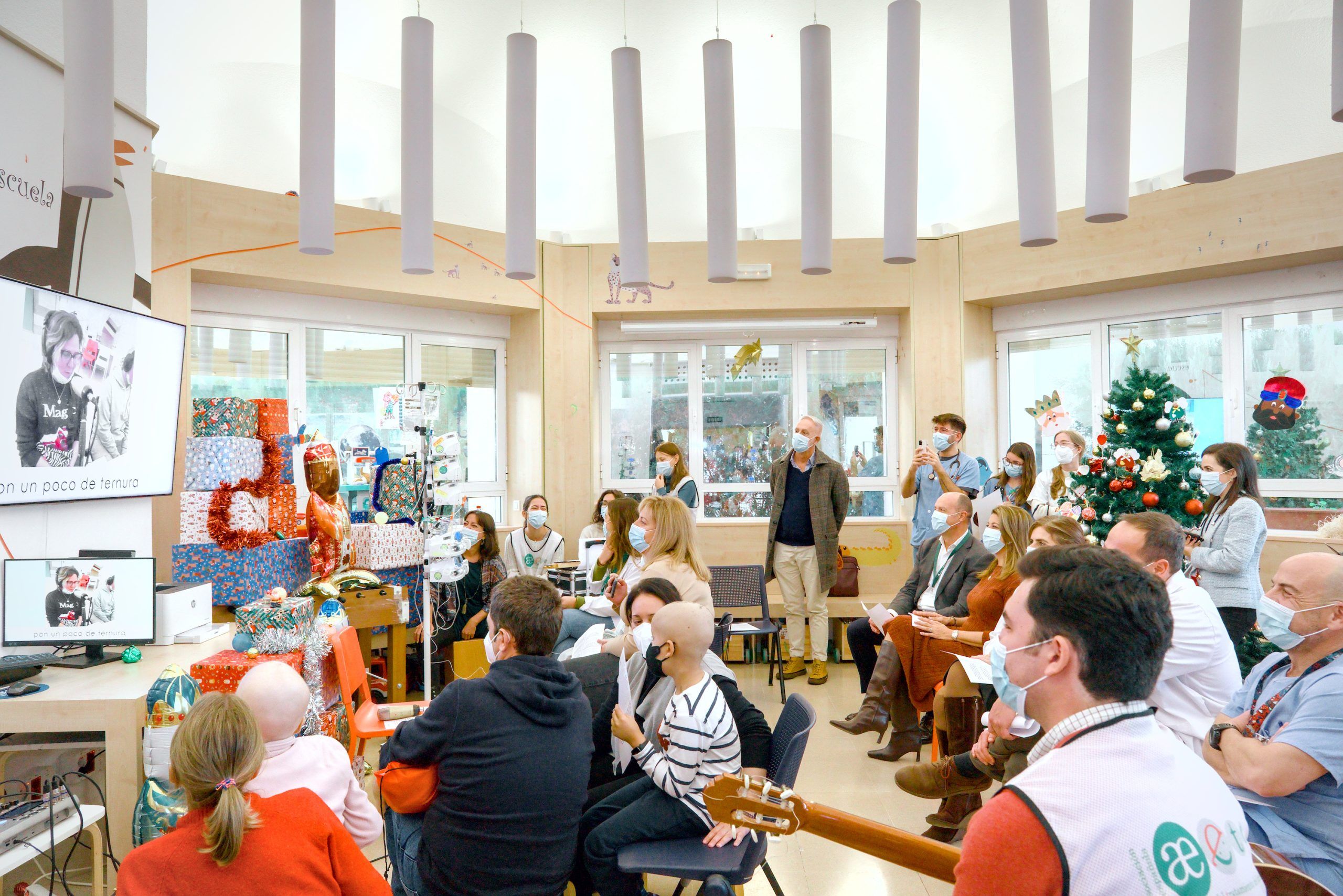 Un día antes, la escuela hospitalaria Azotea Azul había sido escenario de otra fiesta navideña en la que participaron miembros del Conservatorio Francisco Guerrero, que interpretaron un repertorio de canciones navideñas con diversos instrumentos. Esta actuación musical ha formado parte del programa de actividades diseñado para llevar el espíritu festivo a los pequeños pacientes que deben pasar estos días en el centro sanitario.