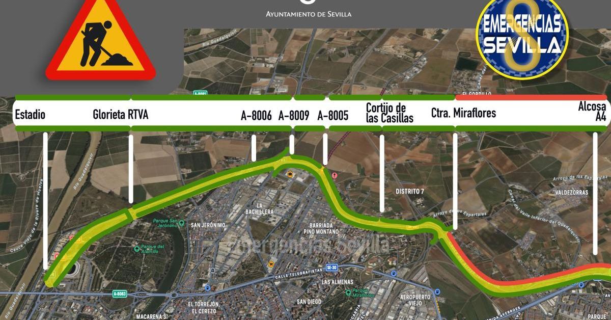 La SE-20 reabre al tráfico excepto un tramo hacia la Cartuja